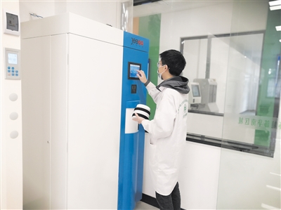 在华南流转中心,监测人员正在屏幕上输入监测样品的信息。按下确认按钮之后,土壤样品便通过气动传输系统,迅速送达到监测人员的手中。