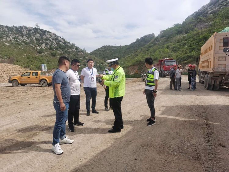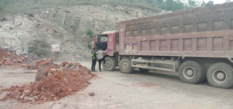 卫辉分局机动车大队联合交警大队对新峰瑞拓矿山运输石头车辆进行检查。