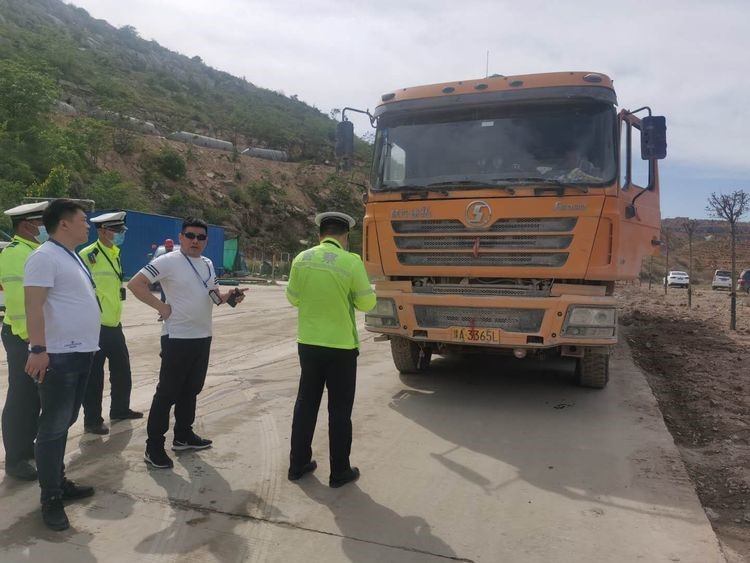 卫辉分局机动车大队联合交警大队对天瑞矿山运输石头车辆进行检查。