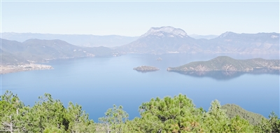 图为蓝天下宁静湛蓝的泸沽湖。蒋朝晖摄