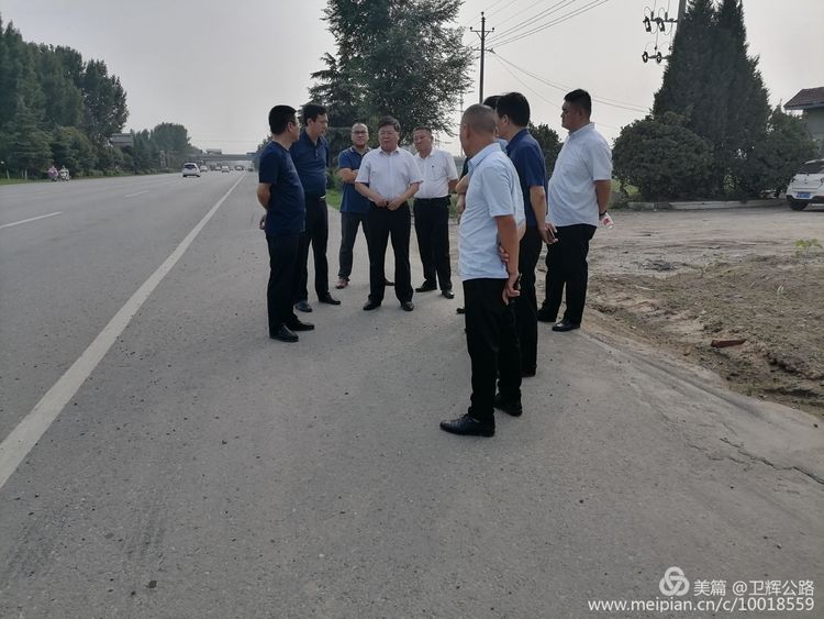 6月29日下午,卫辉市政府市长范士富、副市长张磊、政府办主任李志强一行,现场调研公路重点工程施工进度和大气污染防治工作,公路局局长赵集睿、副局长吴守旺及在建工程负责人陪同调研。
