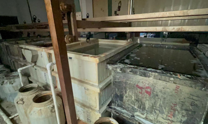 经查,该工厂主要从事五金电泳加工,未取得营业执照,未办理环评文件和环保验收手续,车间设有挂镀架清洗、挂件、超声波除油、除锈、磷化、电泳、过水、超声波清洗等生产工序和挂镀架清洗盆、电泳生产线、烘烤生产线等生产设备。现场检查时,该工厂没有生产,但有临时停产的迹象,电泳生产线和烤箱均有余温,且生产线上有正在生产的产品。执法人员现场发现其未配套废气处理设施,烘烤工序产生的废气通过废气收集管道连接至顶楼高空排放。此外,电泳生产线产生的废水未经处理排入巷道内的死水沟内,由于巷道四周密封,无法进入,故无法在该点位采样监测。针对该情况,执法人员制作双笔录调查取证,委托第三方检测公司对该工厂超声波除油槽、电泳槽、除锈槽内的液体采样检测,并查封其生产设备。