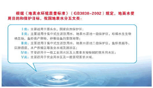 根据《地表水环境质量标准》(GB3838-2002)规定,地面水使用目的和保护目标,我国地表水分五大类: