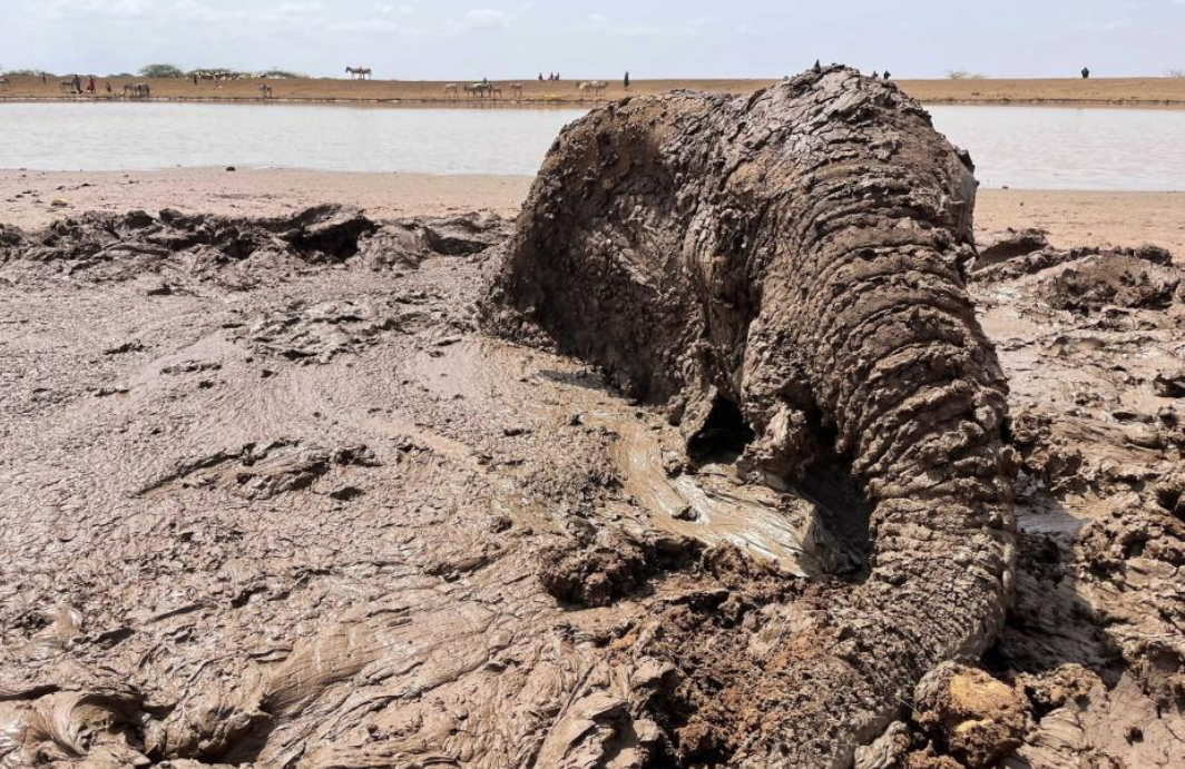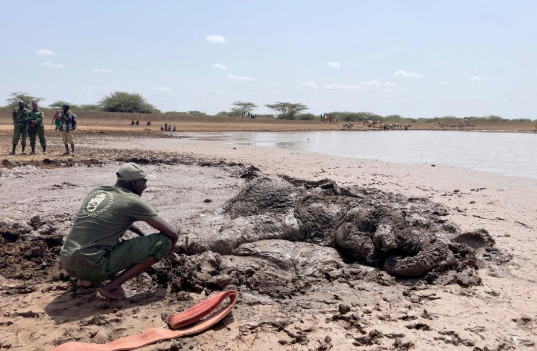 肯尼亚大象深陷泥沼生死一线 环保团队将其救出