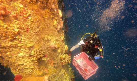 资料图:2019年6月,以色列自然公园和公园管理局的潜水员打捞当地海域的珊瑚,转移至附近的海洋公园。海洋生物学家表示,埃拉特湾的珊瑚礁靠近海岸,增加了它们面临人类工业活动带来的“毒素和污染”的威胁。图片来源:视觉中国