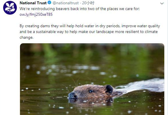 据“中央社”报道,当地时间20日,英国保育组织“国家信托”宣布,预定2020年初,在英格兰南部两地施放天生会修筑堤坝的欧亚河狸,协助对抗水患。
