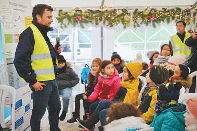 公众开放日活动现场,中广核欧洲能源公司工程师为小学生们讲解新能源开发和利用方面的知识。