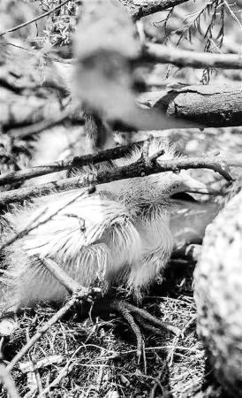 “里面是三四只小白鹭,成鸟或许在找自己的孩子。”李迪回忆。而照片上,只能在树枝下认出一些白色的羽毛。