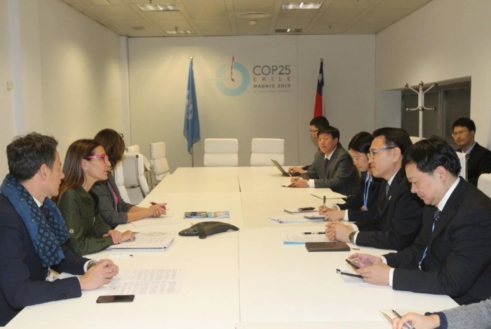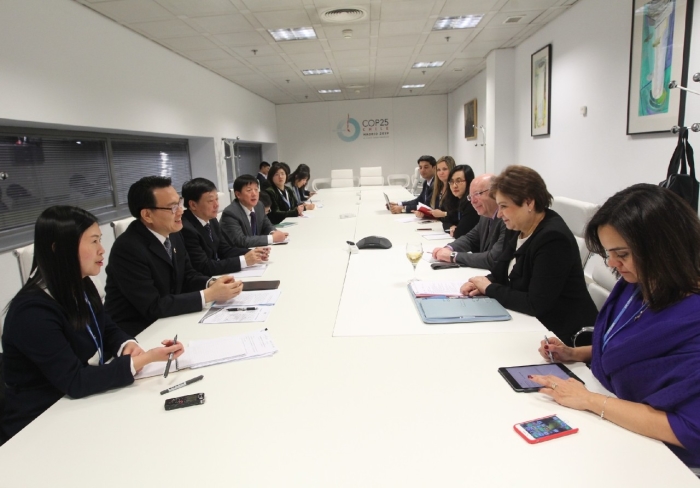 当地时间12月2日起,为期近两周的2019年联合国气候变化大会在西班牙首都马德里举行。大会期间,中国代表团团长、生态环境部副部长赵英民分别会见联合国秘书长安东尼奥·古特雷斯,大会主席、智利环境部长卡罗琳娜·施密特,《联合国气候变化框架公约》秘书处执行秘书帕特里夏·埃斯皮诺萨,欧盟委员会副主席弗兰斯·蒂默曼斯和欧洲议会代表团团长巴斯·艾克浩特,就本次大会成果、重点议题进展情况和提高气候行动力度等问题交换意见。