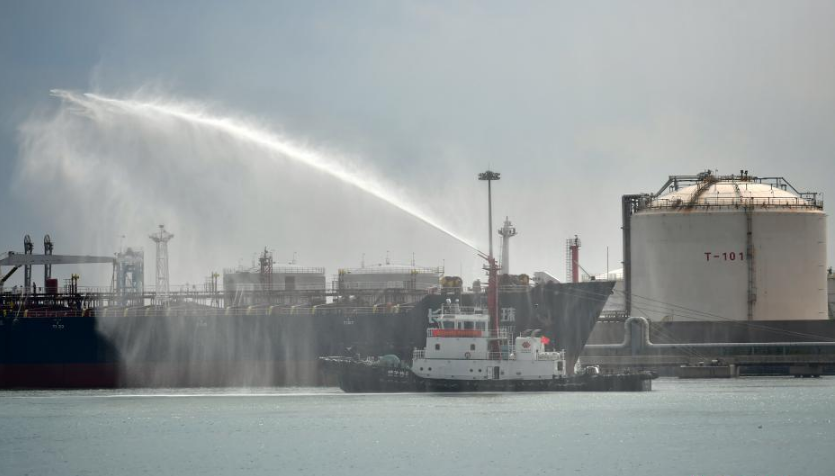 9月25日,河北海域首次船载危化品污染事故应急演习在沧州黄骅港举行。演练科目包括中毒人员救护、有毒有害气体监测、污染源控制与船上污染物清理、喷洒水雾降低空气有毒气体浓度、海面污染物围控及清理等八个科目,全方位展示了船载危险化学品污染应急处置全过程。图为演练现场。 中新社记者 翟羽佳 摄
