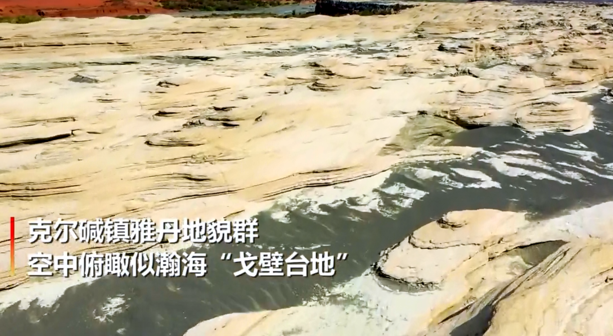 新疆托克逊县克尔碱镇雅丹地貌群,空中俯瞰这座陆地瀚海“戈壁台地”,好似一幅巨幅泼墨山水画。托克逊县雅丹地貌区是距离乌鲁木齐都市圈最近的雅丹地貌群,呈南北走向,长约3.5千米,宽0.6千米,由2000多个土丘组成。与其他地方的雅丹地貌相比,托克逊雅丹地貌土丘分布密集险峻,造型怪异,虚实互补,变化莫测,充满无限的神秘感和巨大的诱惑力,像一大片古城堡般。从空中俯瞰,黄色的土丘间夹杂着黑褐色的沙粒,在风力的作用下,黑褐色的沙粒镶嵌于沙丘之间,颜色层次分明,整个造型如行云流水般畅快。