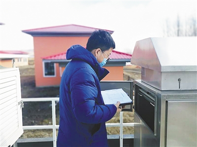 图为柏久明在自动站开展现场检查。 黑龙江省核与辐射安全执法局供图
