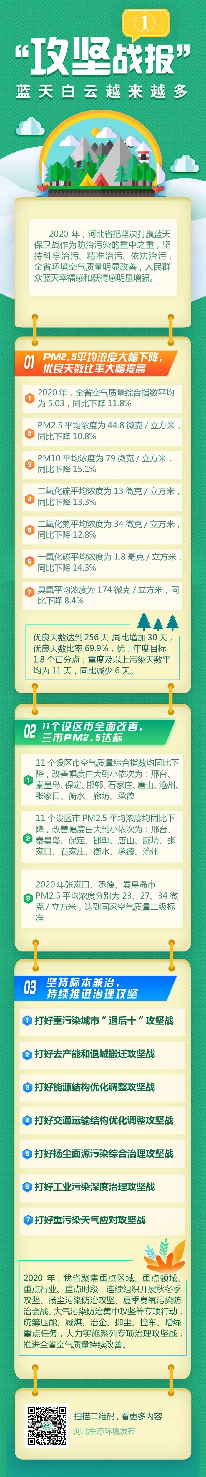 2020年是污染防治攻坚战和“十三五”规划的收官之年,河北全省上下同心,合力攻坚,蓝天白云越来越多,生态环境越来越好。自1月25日起,河北推出“攻坚战报”,以长图形式反映河北省大气、水、土壤等各领域污染防治攻坚战取得的成效,提振信心,再鼓干劲,为“十四五”生态环境保护工作开局起步凝聚合力。