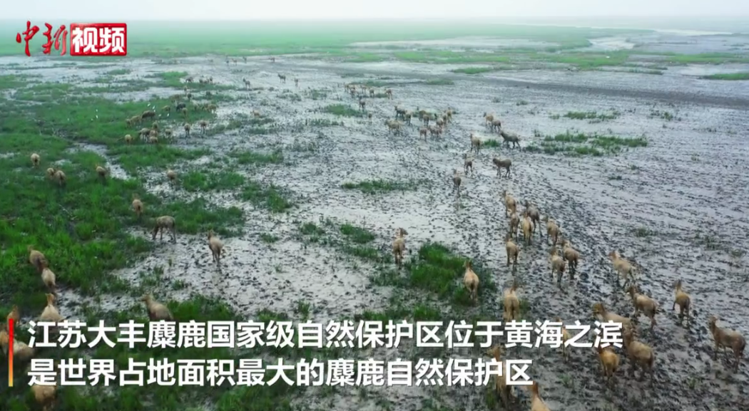 近日,初秋时节的江苏省盐城市大丰区野生麋鹿放养区水草丰美,秋色宜人,成群的麋鹿在滩涂湿地撒欢、觅食、嬉戏。江苏大丰麋鹿国家级自然保护区位于黄海之滨,是世界占地面积最大的麋鹿自然保护区,拥有世界最大的野生麋鹿种群。位于黄海海涂湿地的野生放养区水草资源充足,是麋鹿生活的居佳之地。麋鹿的数量也成倍的增长,达到2000多头。(制作 吴瑞)