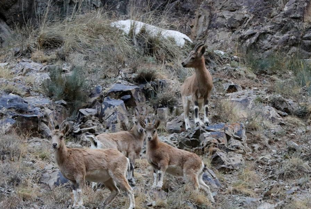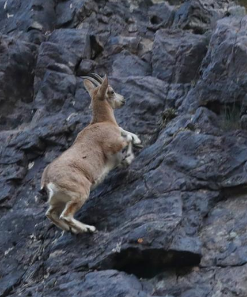 近期,国家一级野生保护动物北山羊大量出现在新疆哈密市巴里坤县境内的东天山。北山羊沿着陡峭的山崖攀爬,时而停留时而觅食。随着山区气候的变化,北山羊下到距离村庄不远处的山间觅食。近年来,新疆哈密市加大对野生动物保护力度,各种野生动物种群和数量不断增加,形成了人与野生动物和谐相处的良好局面。 达吾提·热夏提 摄