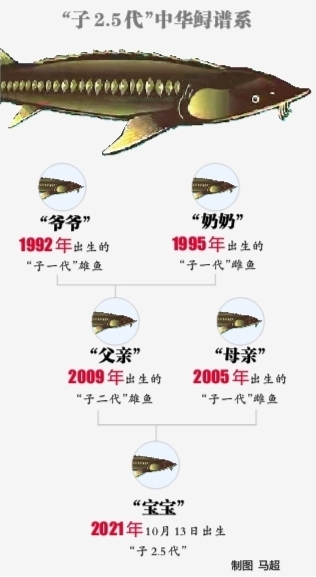 此次出生的子2.5代中华鲟,则是子一代的“母亲”(2005年出生)和子二代的“父亲”(2009年出生)的“人工结合”。这也是国内首次使用中华鲟“子二代”个体开展中华鲟全人工繁殖。