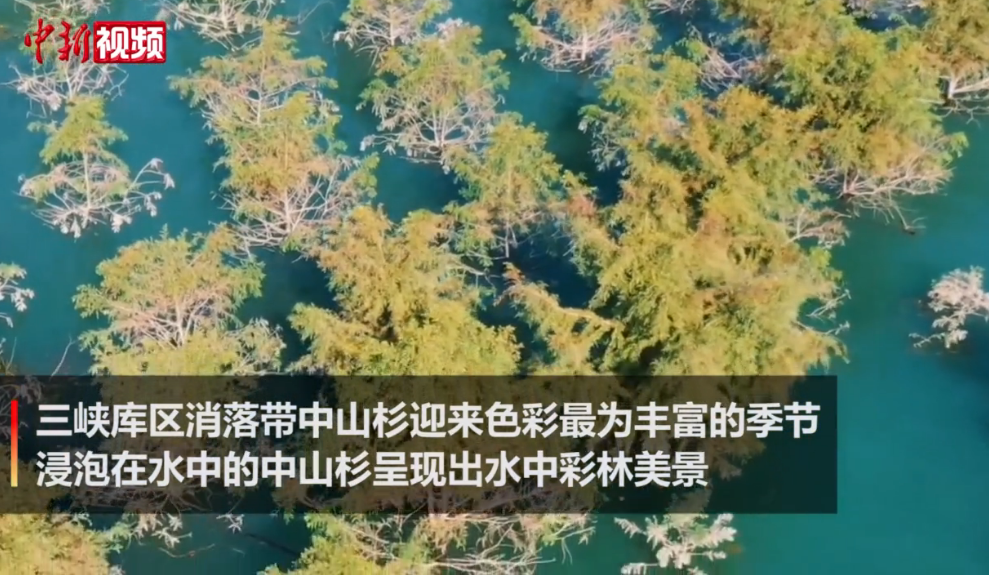 近日,在三峡库区重庆万州,两岸消落带上栽植的中山杉迎来一年中色彩最为丰富的季节,呈现出“水中彩林”美景。