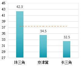京津冀、长三角、珠三角三地区平均分