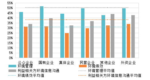 《报告》按所有制将上市公司划分为国有企业、民营企业、公众企业、外资企业、集体企业及其他企业六类,披露水平差距明显。其中,外资企业披露指数得分最高(39.5分),其次为国有企业(38.4分),两类企业得分高于平均分。在整体民营企业板块内,披露水平两极分化明显,前20名有7家为民营企业,同时排名居后的企业中,民营企业也占多数。