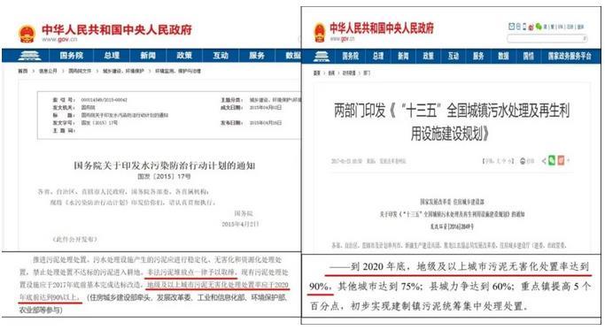 《水污染防治行动计划》《“十三五”全国城镇污水处理及再生利用设施建设规划》要求地级及以上城市污泥无害化处置率应于2020年底前达到90%以上。图片来源:生态环境部微信公众号