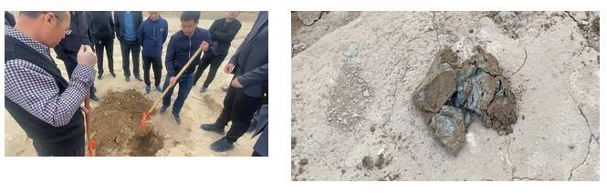 图5 督察人员在现场用铁锹直接挖出铅锌选矿废渣 来源:生态环境部微信公众号