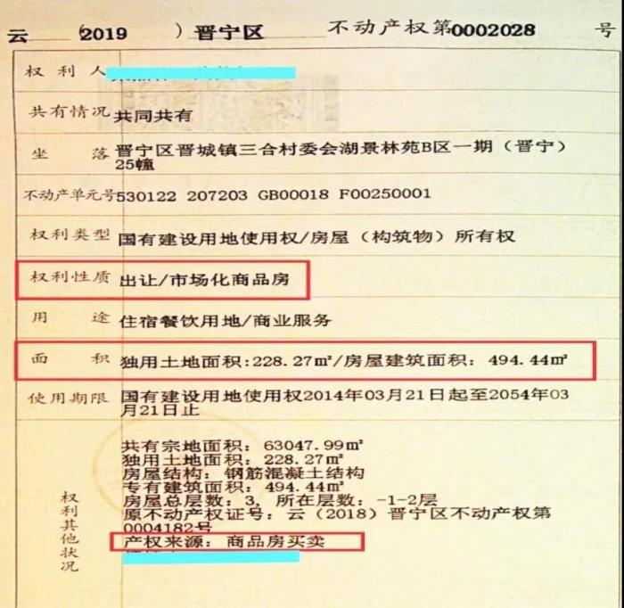 该项目某套房屋不动产权证显示,其权利性质为“市场化商品房”,产权来源为“商品房买卖”,建筑面积为494.44平方米。图片来源:生态环境部微信公众号