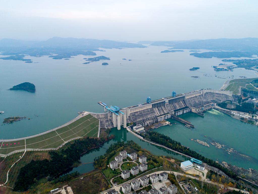 2019年11月26日无人机拍摄的丹江口水库大坝。新华社记者 熊琦 摄