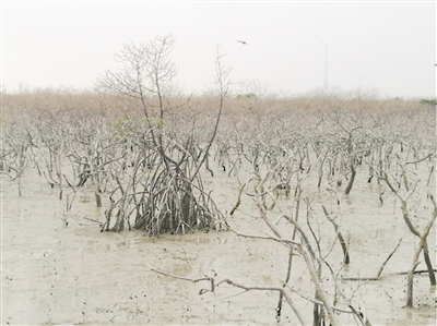 图为成片死亡的红树林。中央生态环境保护督察组供图