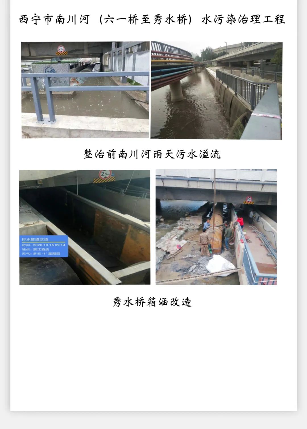 2020年,西宁市实施了第一、第五污水处理厂升级改造工程、湟水河(5号液压坝)人行桥处溢流应急工程、南川河(六一桥至秀水桥)水污染治理工程、南川河城市污水截污纳管工程等项目,有效改善了水环境质量。