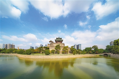 图为碧水掩映中的邯郸市丛台公园。 孔令斌摄