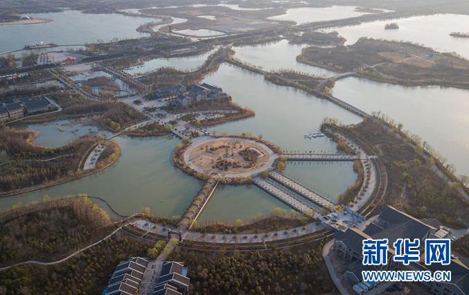 2017年12月,习近平来到神农码头时,曾经荒芜的采煤塌陷区经过生态修复、景观构建,已蝶变成湖阔景美的国家湿地公园。