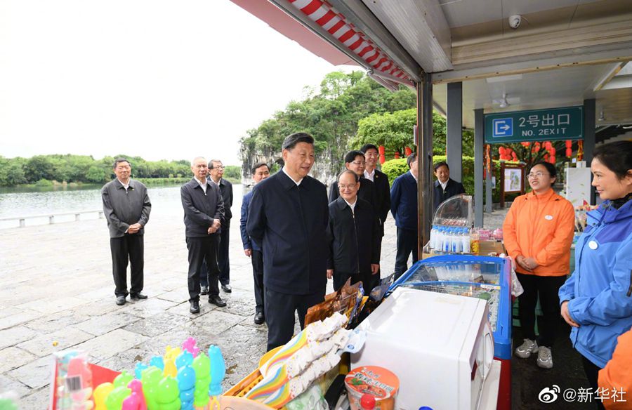 26日下午,习近平总书记来到桂林市象鼻山公园考察调研,并同游客亲切交谈。他指出,桂林山水甲天下,天生丽质,绿水青山,是大自然赐予中华民族的一块宝地,一定要呵护好。要坚持以人民为中心,提高服务质量,提升格调品位,努力打造世界级旅游城市、宜居城市。(文字记者:张晓松、朱基钗;摄影记者:鞠鹏、申宏)